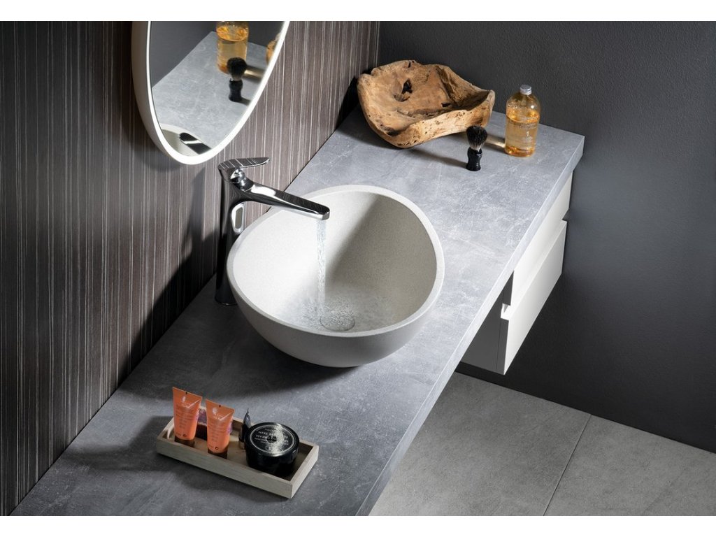 PUNC betonové umyvadlo na desku, včetně výpusti, 53x39cm, bílý pískovec + slevový kód