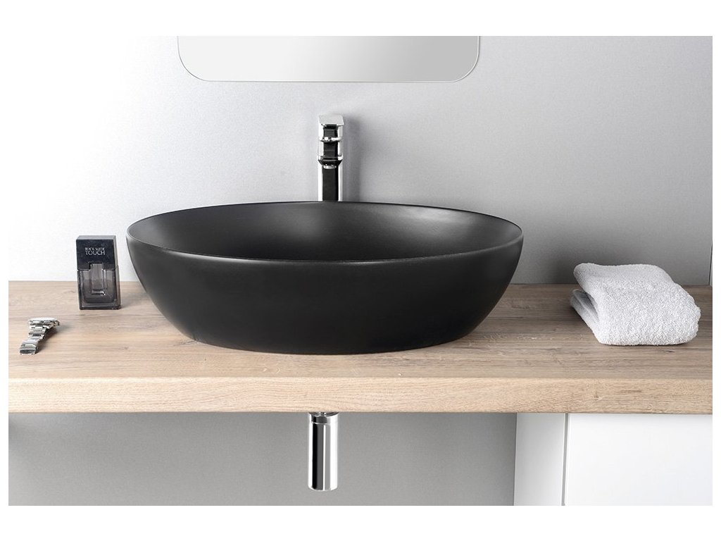 PURA keramické umyvadlo na desku 60x42cm, černá mat + slevový kód