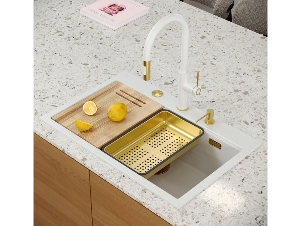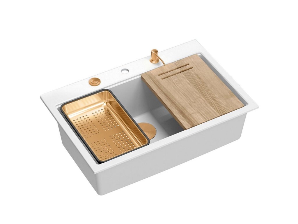 Zlewozmywak Marc 110 Workstation swoim minimalistycznym, nowoczesnym wyglądem sprawia, że wpasuje się w aranżację każdej kuchni. Głęboka i pojemna komora zapewnia duży komfort użytkowania. Zastosowany materiał, charakteryzują się wyjątkową wytrzymałością oraz odpornością na zróżnicowane temperatury i charakter wykonywanych w ich obrębie prac. Bardzo gładka powierzchnia sprzyja utrzymaniu czystości. Zlewozmywak przystosowany jest do montażu wpuszczanego. W komplecie ze zlewem jest dostępny szereg akcesoriów kuchennych – dozownik płynu, bambusowa deska do krojenia, ociekacz oraz zwijana Qmata stalowo silikonowa (nie jest dołączona do zestawu w wariantach złotym i miedzianym) , która może również służyć do odkładania mokrych produktów spożywczych lub naczyń, ale także sprawdzi się jako podstawka pod gorący garnek. Zastosowanie tych elementów, powiększa powierzchnię roboczą w kuchni i pozwala z powodzeniem wykorzystać komorę jako dodatkowe miejsce robocze, do krojenia, czy suszenia. (NO-AUTOTRANSLATE)Doplňkové parametry