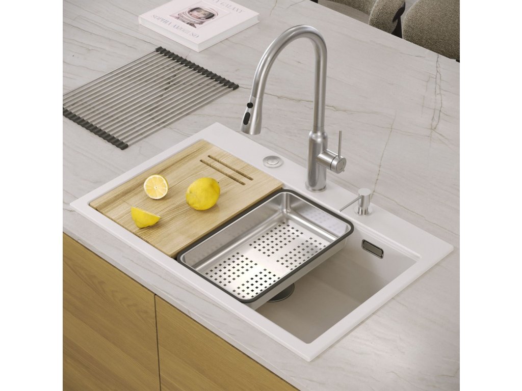 Quadron - Granitový dřez MARC 110 WORKSTATION White Ocel HQM7650U1_BS DOPRAVA ZDARMA