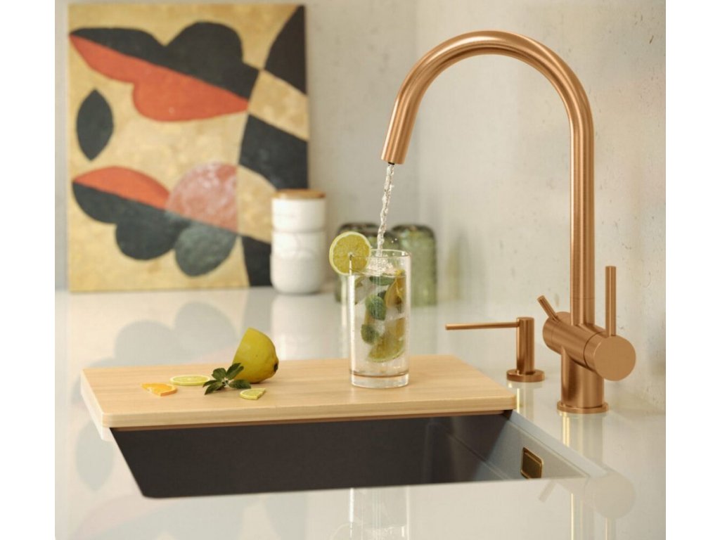 Představujeme Vám RONA stojánkovou dřezovou baterii v elegantní mědi matové barvě. Tato baterie bude skvělým doplňkem Vaší kuchyně, díky svému unikátnímu designu a funkčnosti....