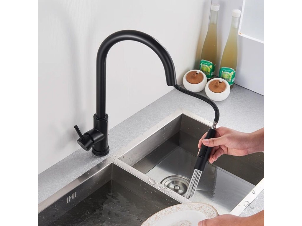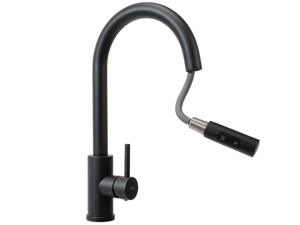 Základem každé funkční kuchyně je správná kuchyňská baterie. Mosazné tělo je zárukou odolnosti a stability baterie. Povrchová úprava vrstvou chromu dodává baterii odolnost proti znečištění a lakování v černé barvě nevšední vzhled, který bude dokonale ladit s dekorem vaší kuchyně. Dlouhodobou spolehlivost zaručuje použití keramické hlavice. Ohnutý výtok umožňuje nasměrovat proud na libovolné místo. Na špičce hubice je přepínač, který vám umožňuje volit mezi rozptýleným proudem a koncentrovaným proudem. Návod