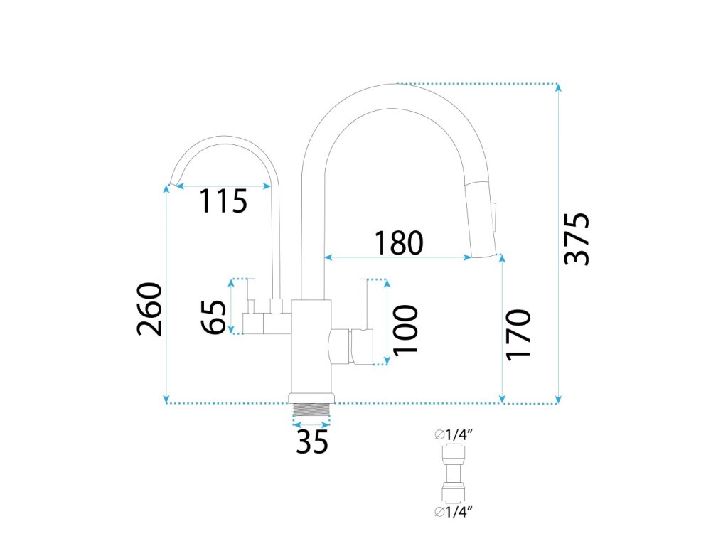 Kuchyňská baterie Eco Fresh je moderním a funkčním řešením, které spojuje elegantní design s inovativními funkcemi. Je vybavena otočným tělem, které umožňuje volně nastavit směr proudu vody, a také výsuvnou výpustí, která usnadňuje mytí velkých nádob a pracovních ploch. Navíc má přepínač proudu vody, který umožňuje snadno měnit typ proudu a přizpůsobit ho potřebám uživatele. Druhý výtok umožňuje připojení filtru pitné vody, což zajišťuje čistou a zdravou vodu k pití. Díky těmto funkcím je baterie Eco Fresh ideálním řešením pro moderní kuchyně, kde nabízí komfort, funkčnost a estetiku v jednom. Součástí balení není filtr pitné vody. Průměr připojení filtru: Rychlospojka 1/4 palce.Doplňkové parametry