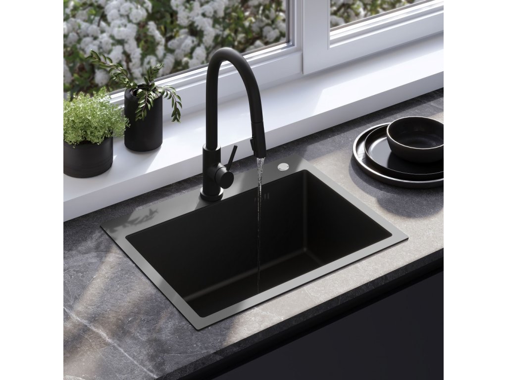 Kuchyňský granitový dřez odolný vůdči poškrábání, teplotním šokům a nárazům. Směs přírodní pryskyřice a hustého granitu.