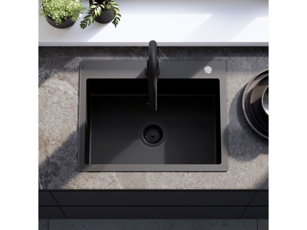 Kuchyňský granitový dřez odolný vůdči poškrábání, teplotním šokům a nárazům. Směs přírodní pryskyřice a hustého granitu.
