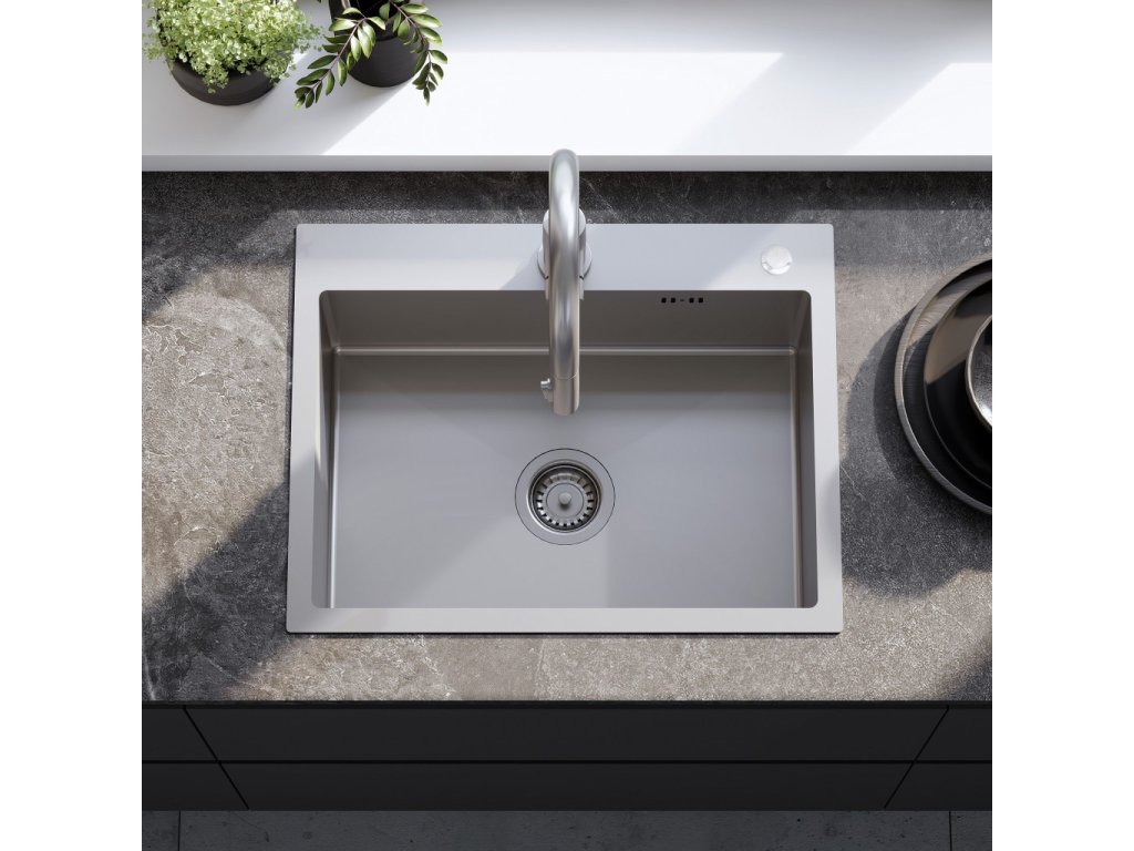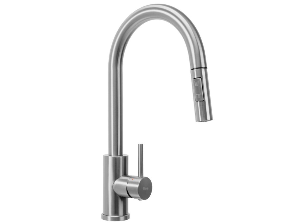 REA - Ocelový dřez Liam BRUSH NICKEL s kuchyňskou baterií KPL-96006