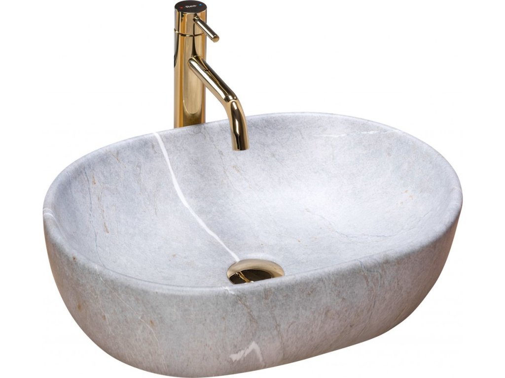 Krásné umyvadlo na desku Rea Lara napodobující kámen. Díky technice, při které byla vyrobena horní vrstva umyvadla, má každá položka jedinečný vzor. Tento efekt dokonale napodobuje přírodní kámen. Umyvadlo je přizpůsobeno pro montáž na desku nebo skříňku. Bylo vyrobeno z vysoce kvalitní sanitární keramiky. Díky speciální fázi výroby je odolné a snadno se čistí.