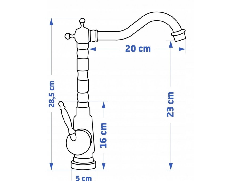 Jedinečná umyvadlové baterie na desku Bona Old s mosaznými vizuálními prvky ve zlaté barvě zdůrazní jedinečnost každé koupelny a snadno se čistí. Baterie je vhodná pro instalaci na desku. Hlava baterie je vyrobena z velmi odolné keramiky, která zaručuje dlouhou životnost.