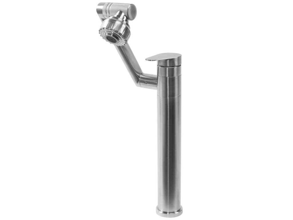 Představujeme vám krásnou, extrémně funkční a moderní baterii. Jedná se o výrobek, který dokonale vyplní prostor vaší koupelny při zachování dokonalého vzhledu a estetiky interiéru. Baterie je určena k montáži na desku vedle umyvadla. Je vyrobena z mosazi potažené elegantním kartáčovaným povrchem. Díky speciální výrobní fázi je odolný a snadno se udržuje v čistotě. NávodDoplňkové parametry