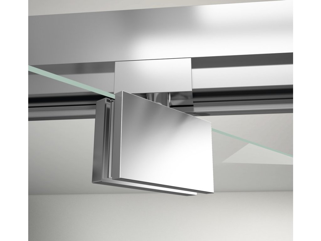 - U pivotových dveří je sklo uchyceno v otočném pivotovém pantu, tento mechanismus poskytuje dlouhou životnost