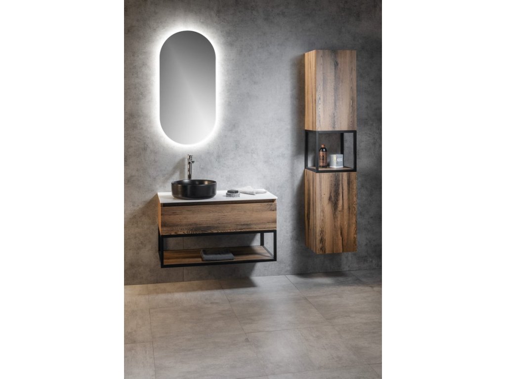 Konstrukce ze série SKARA jsou vhodné do koupelen zařizovaných v moderním i industriálním stylu. Skvěle je doplní vysoká skříňka SKARA ve stejném dekoru nebo skříňky a zrcadla TREOS s rámem v dřevěném dekoru. Perfektní je i kombinace s podsvíceným zrcadlem SORT v černém hliníkovém rámu.