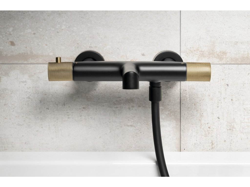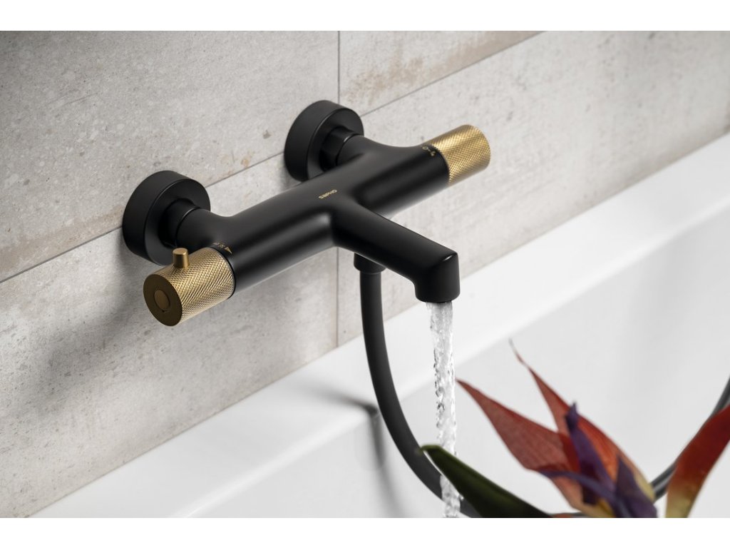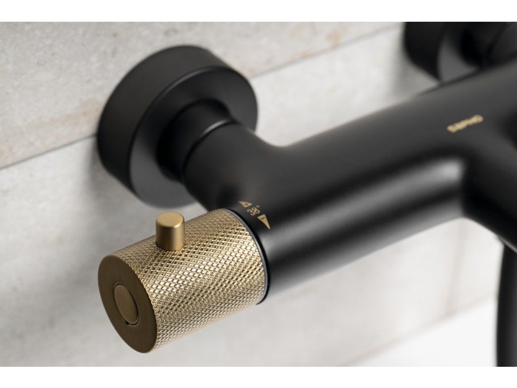 SOLARIS nástěnná vanová termostatická baterie, černá/zlato mat