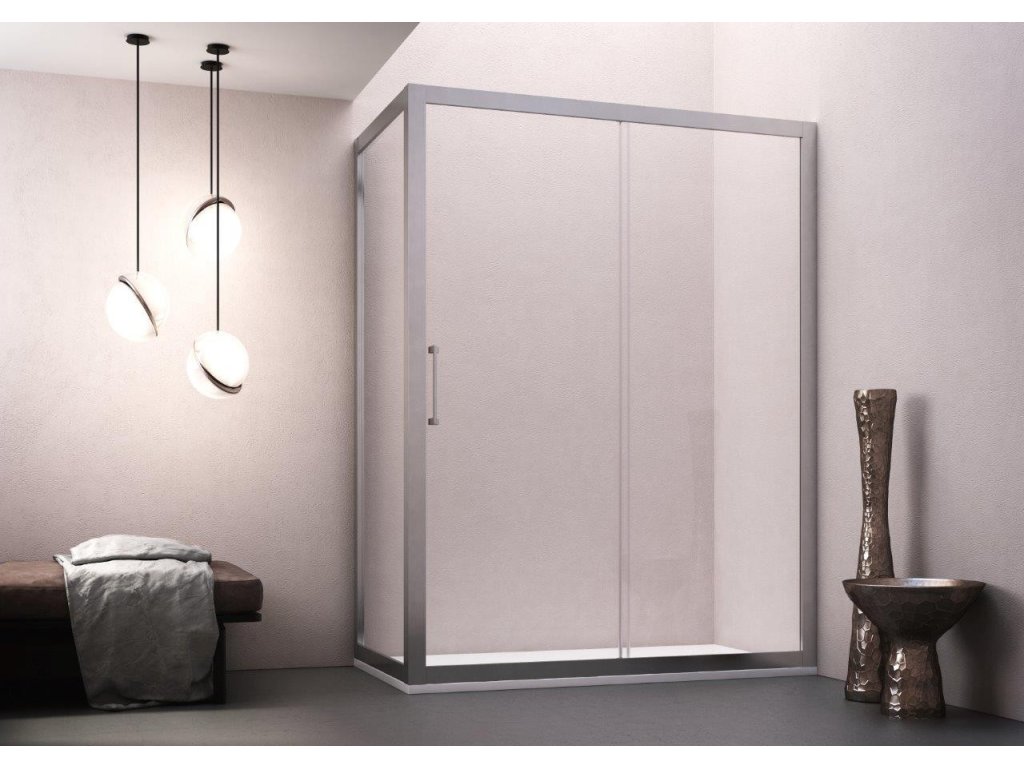 Posuvné skleněné stěny řeší atypické vstupy v prostorných koupelnách. Vytváří velmi luxusní dojem, který je podpořen výrazným chromovým madlem. Dodává se v univerzálním provedení.