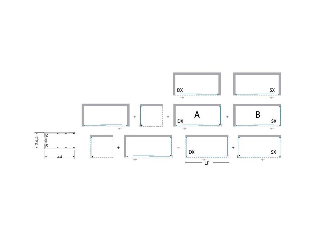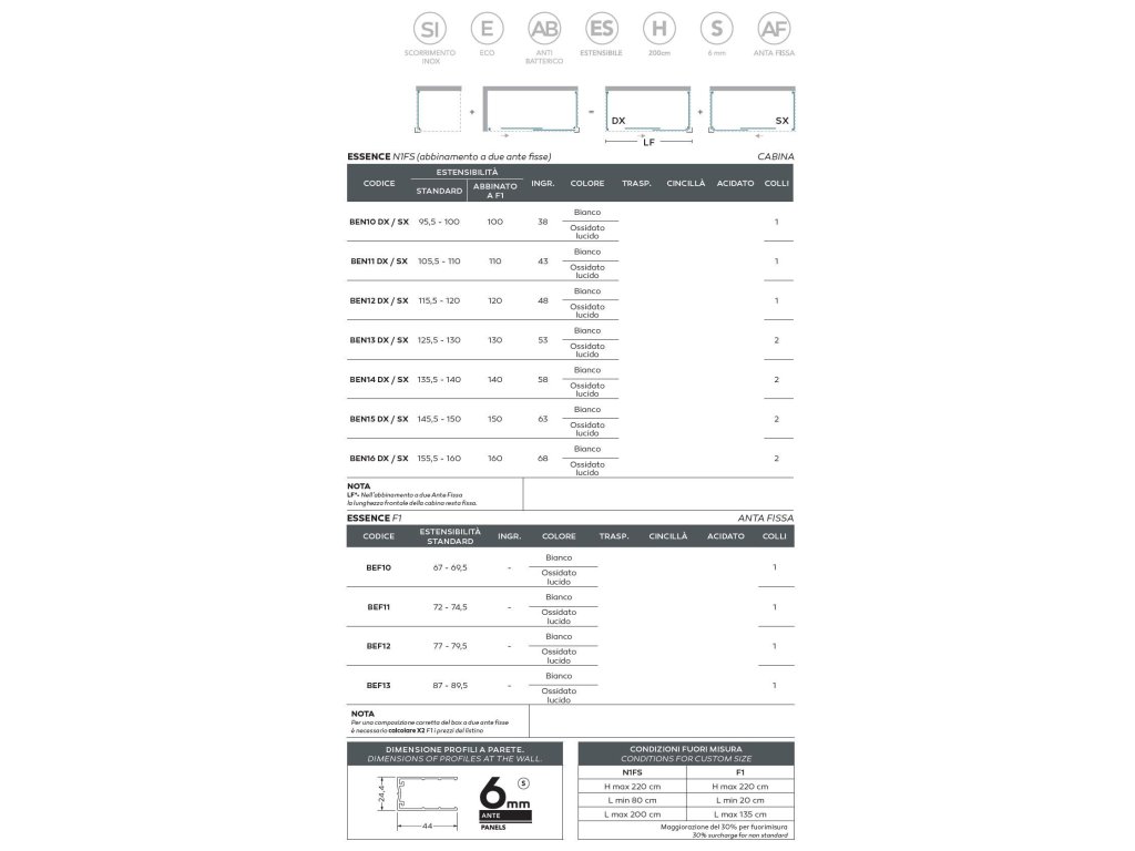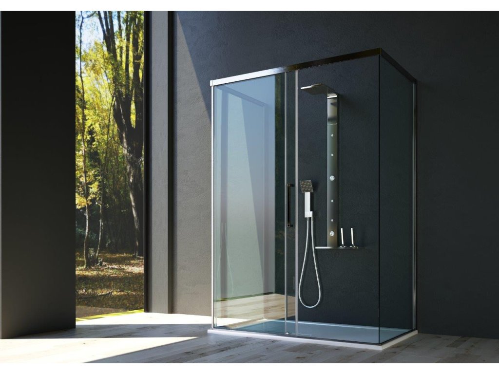 Posuvné bezbariérové skleněné stěny řeší atypické vstupy v prostorných koupelnách. Vytváří velmi luxusní dojem, který je podpořen výrazným chromovým madlem. Dodává se buď v levém SX nebo pravém DX provedení. Lze dokoupit jednu nebo dvě boční pevné stěny Essence F1, pomocí kterých poskládáte praktický sprchový kout. Pevná stěna je dodávána v univerzálním levém / pravém provedení.