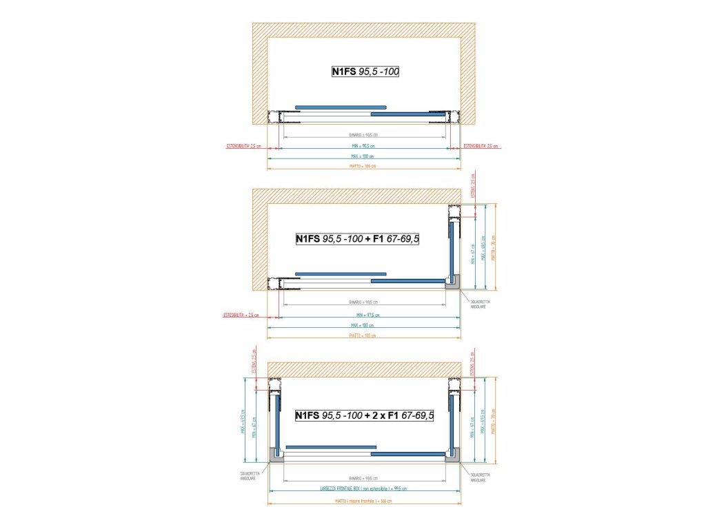 - 95,5 - 100 × 200 (v) cm, šířka vstupu 38 cm