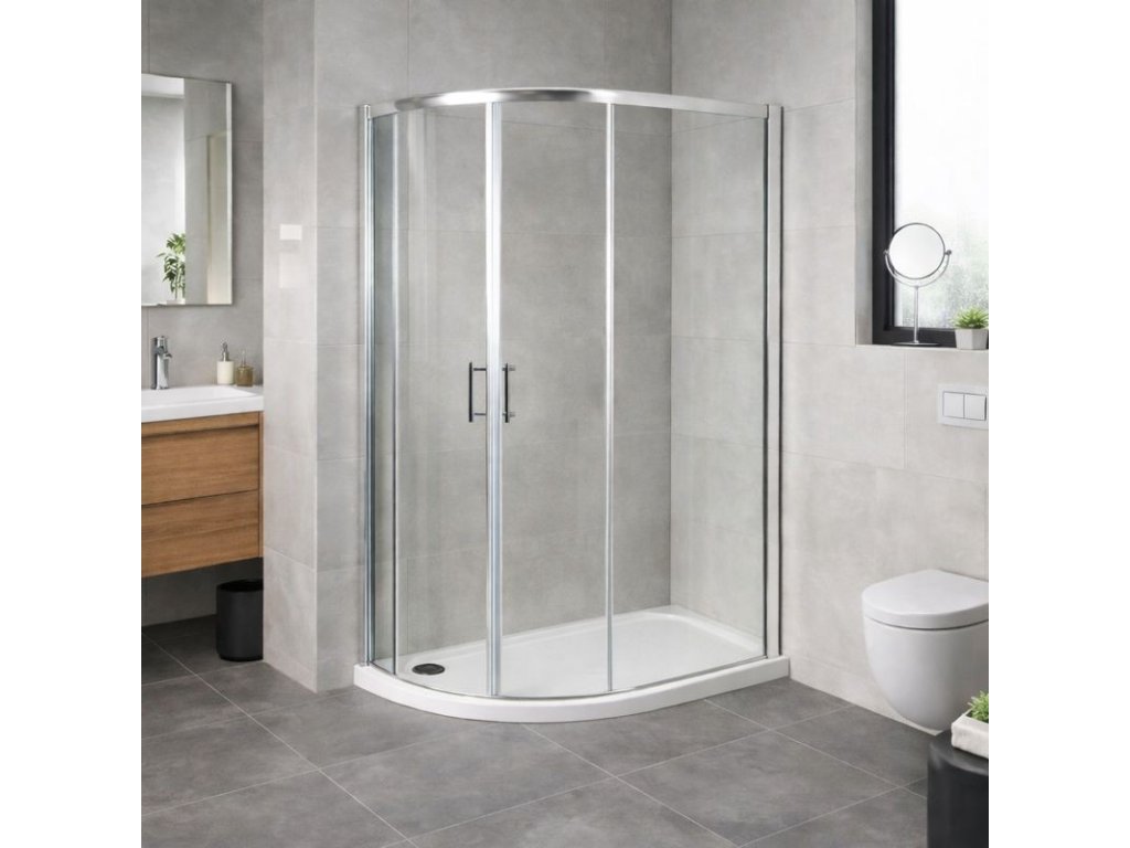 Čtvrtkruhový atypický sprchový kout IBIZA II vyniká vysoce kvalitním zpracováním a spolehlivou funkčností všech součástí a materiálů.