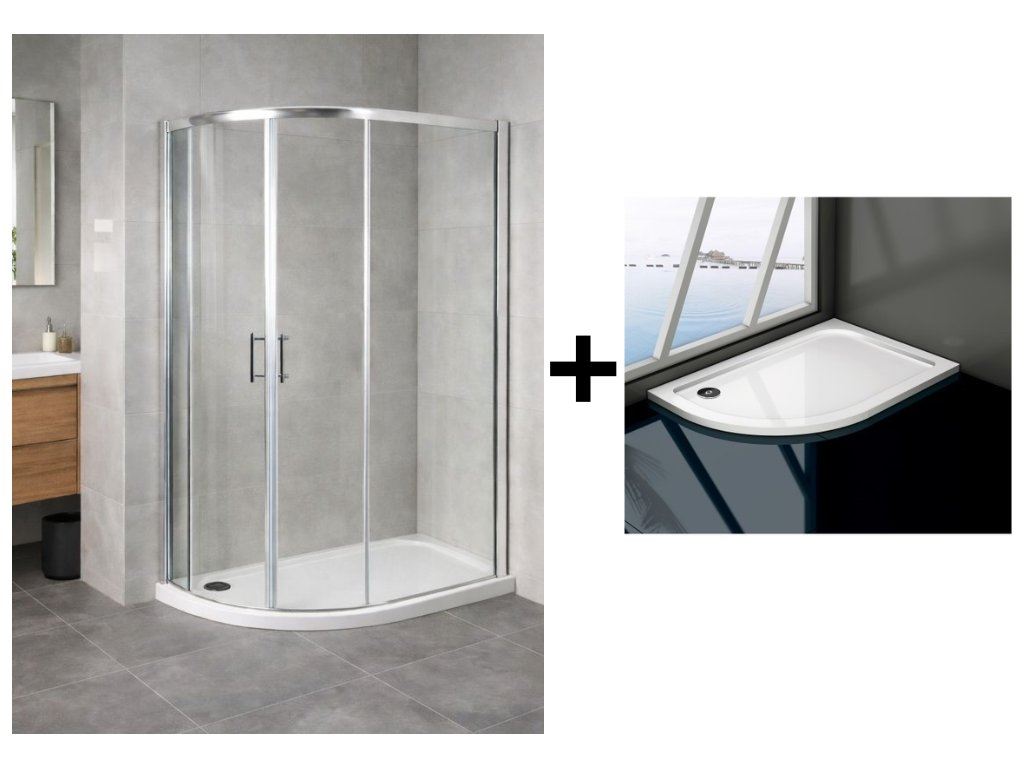 Sprchový asymetrický kout IBIZA II + vanička VENETS, 100, 80, Levé (SX), Čiré bezpečnostní sklo - 5 mm, Chrom/Leštěný hliník (ALU) + slevový kód