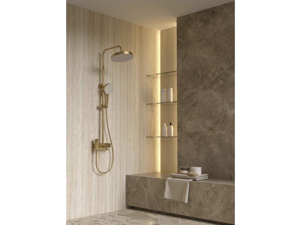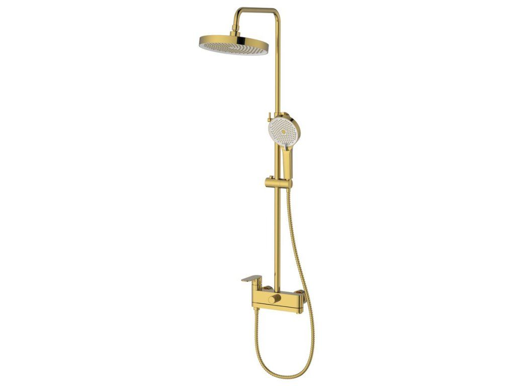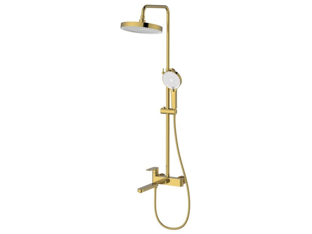 Sprchový sloup s pákovou baterií, otočné ramínko, zlato mat