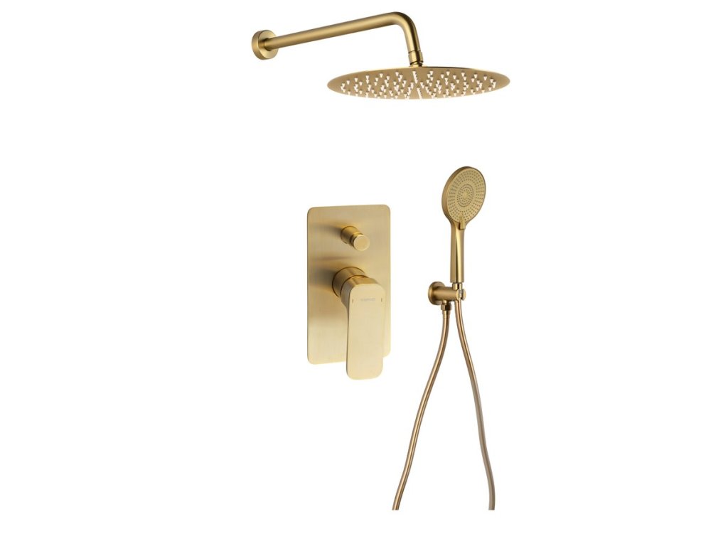 SPY podomítkový sprchový set s pákovou baterií, otočný přepínač, 2 výstupy, zlato mat + slevový kód