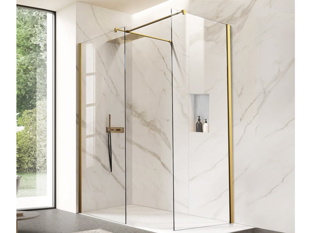 Walk-in sprchová zástěna LAGOS NEW s rámem a rozpěrnou tyčí ve čtyřech barvách (chrom, černá, zlatá a grafitová), nabízí jednoduché a přitom praktické řešení bez použití pohyblivých dveří, ale s maximálním vstupem. Dá se osadit jak na sprchové vaničky, tak i přímo na podlahu.