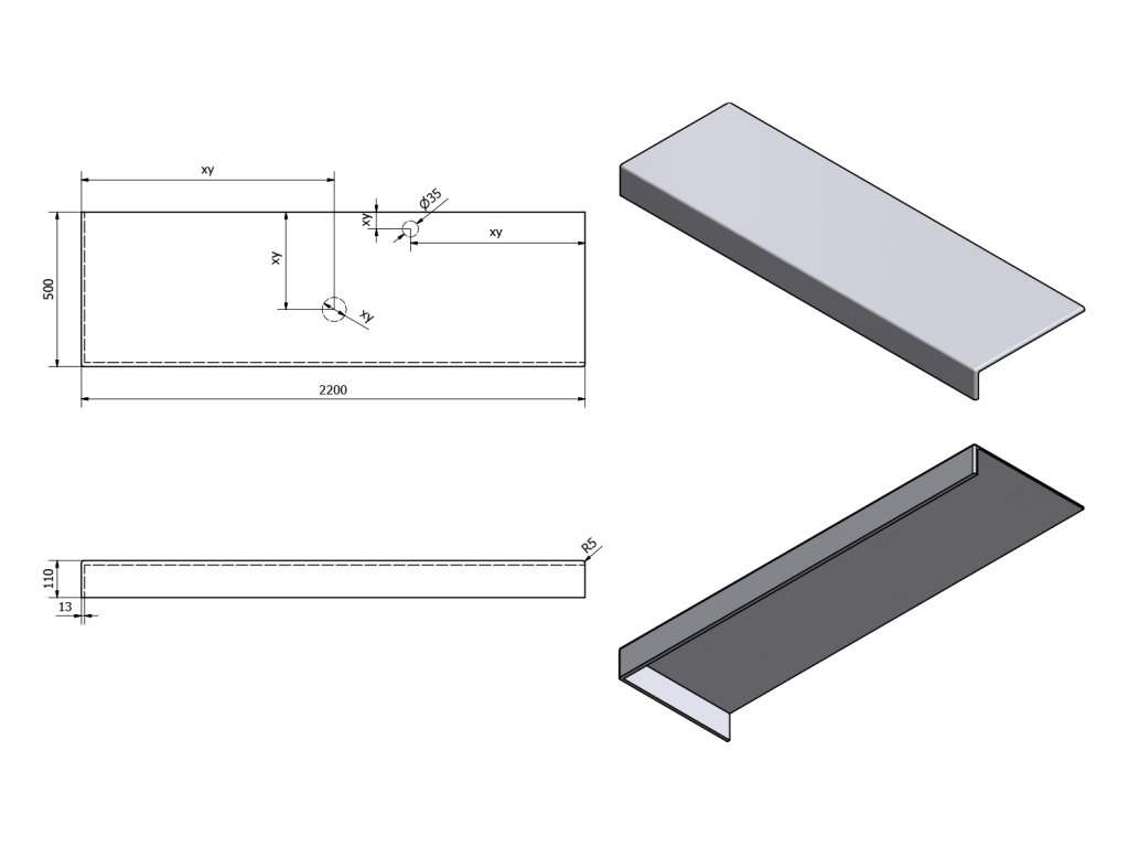 - Možnost dodání s otvory pro baterii a odpad dle výkresu (lze vrtat i v místě instalace)