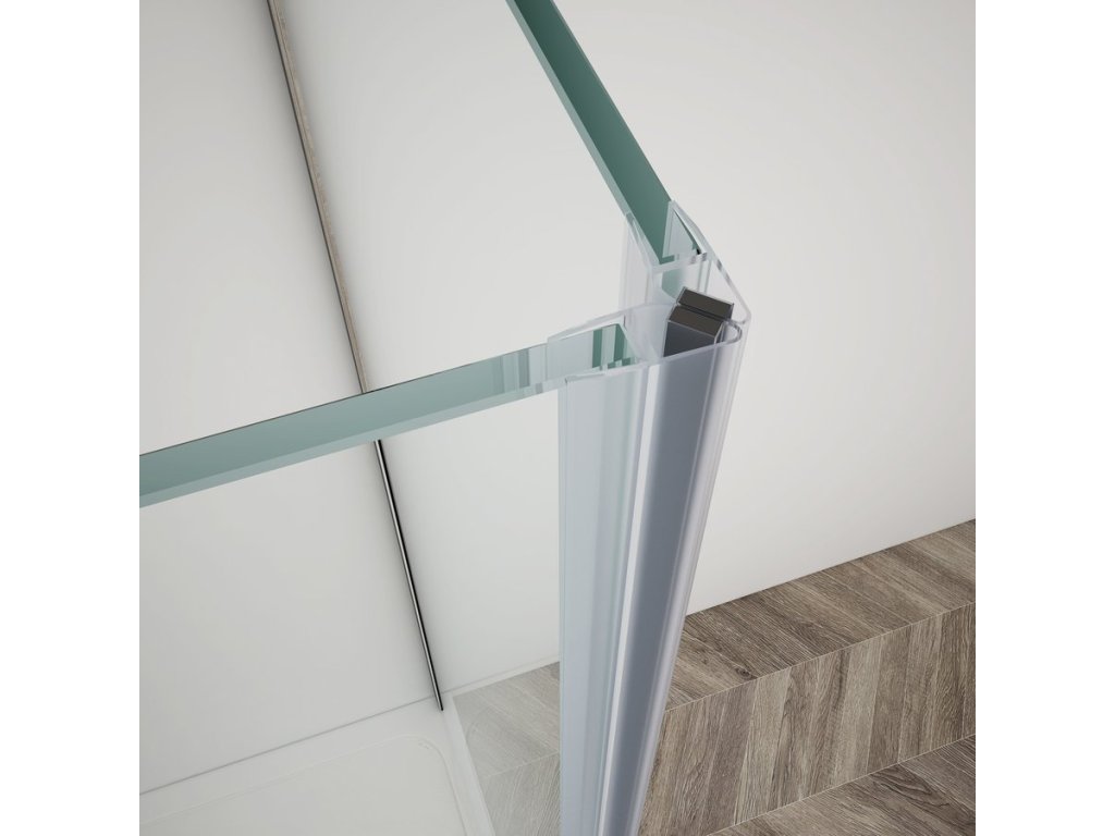 Ochranu proti přetečení vody u bezrámových zástěn zajišťuje nízká přetoková lišta, která dotváří čistý vzhled zástěny. Bezrámové zástěny tak působí svěžím elegantním dojmem.