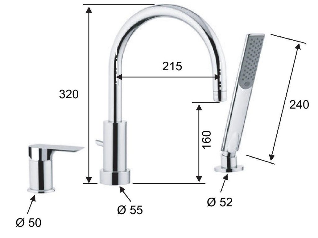 - S příslušenstvím: sprcha se 120 cm dlouhou hadicí, upevňovací sada