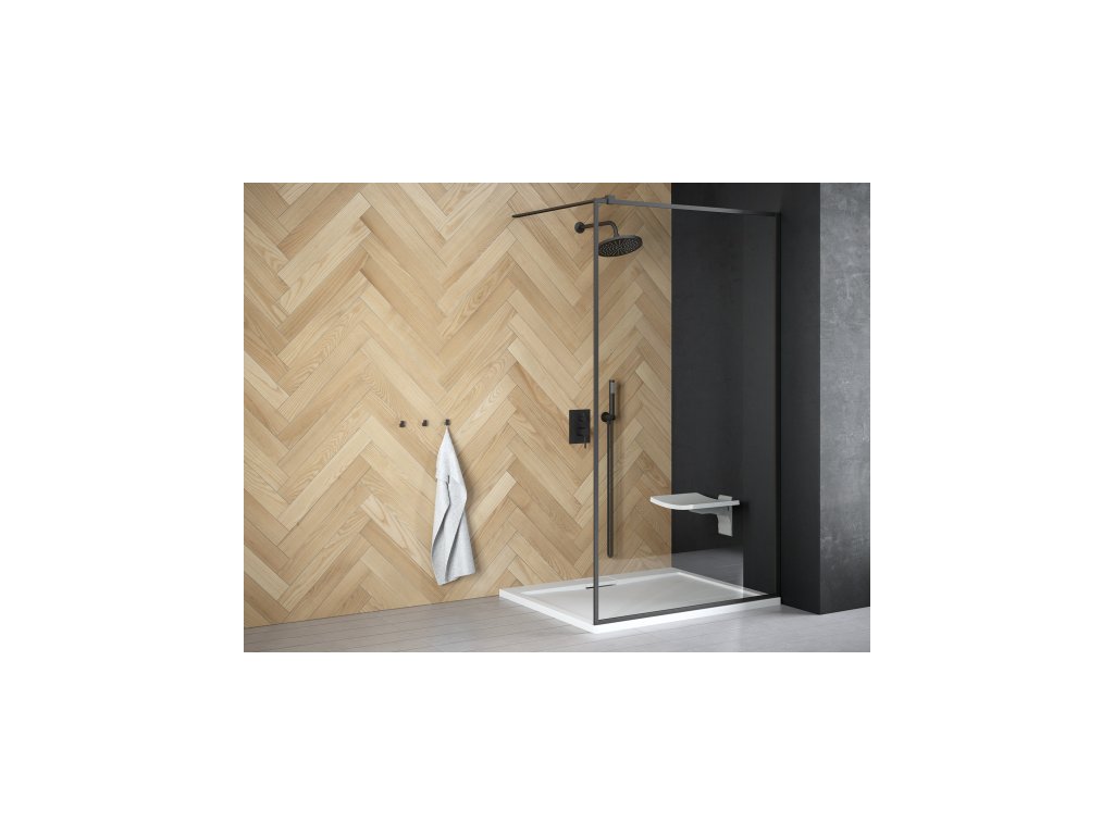 Walk-in sprchový kout TOCA, 120, 190, Univerzální Levé / Pravé, Čiré bezpečnostní sklo - 8 mm, Černá + slevový kód, + prodloužená záruka