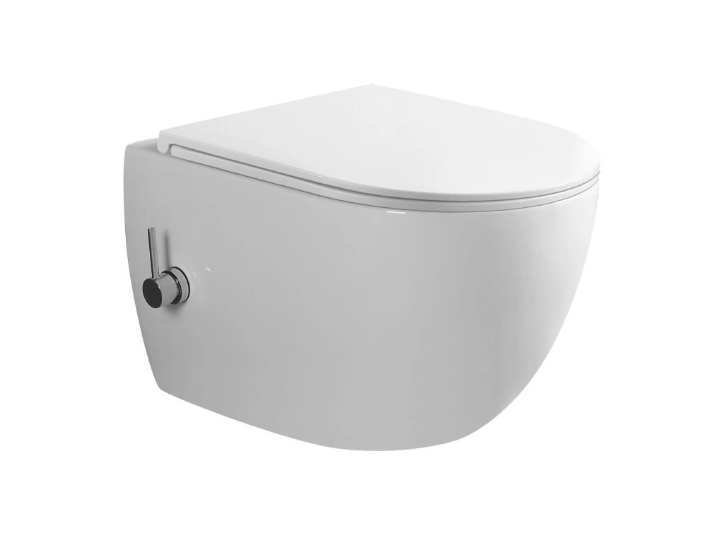 WC s bidetem 2v1 INTEGRA Rimless: Závěsné WC, integrovaná baterie a sedátko