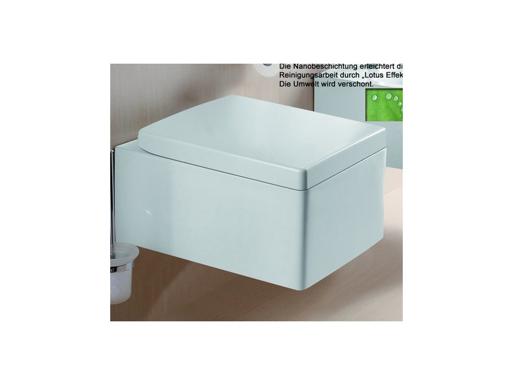 Závěsné wc v módním hranatém tvaru. Rozměr: 520x285x390 mmrozteč: 23 cm, lze použít se splachovacím systémem Geberit