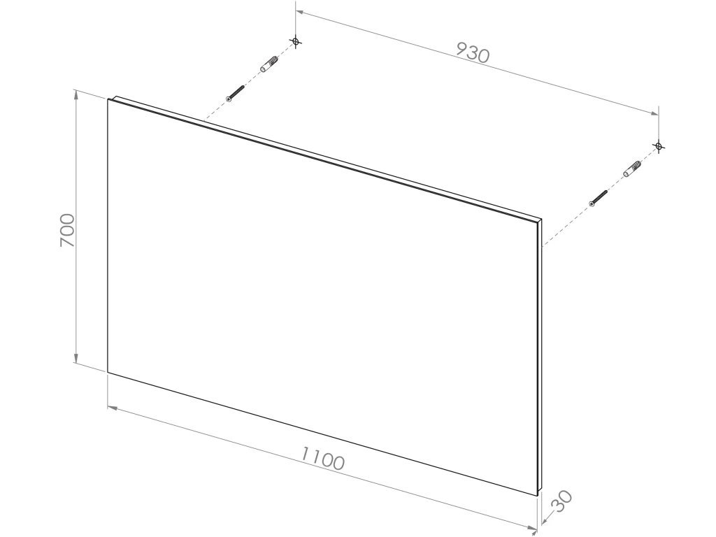 - Jednoduchá instalace: Zrcadlo má na zadní straně hliníkový rám s připravenými otvory pro montáž na zeď. Šrouby a hmoždinky jsou součástí balení. Rám je od okraje vzdálený 2,5 cm, nenarušuje vzhled zrcadla a není viditelný z bočního pohledu, zároveň zajišťuje efektivnější chlazení napájecího trafa.