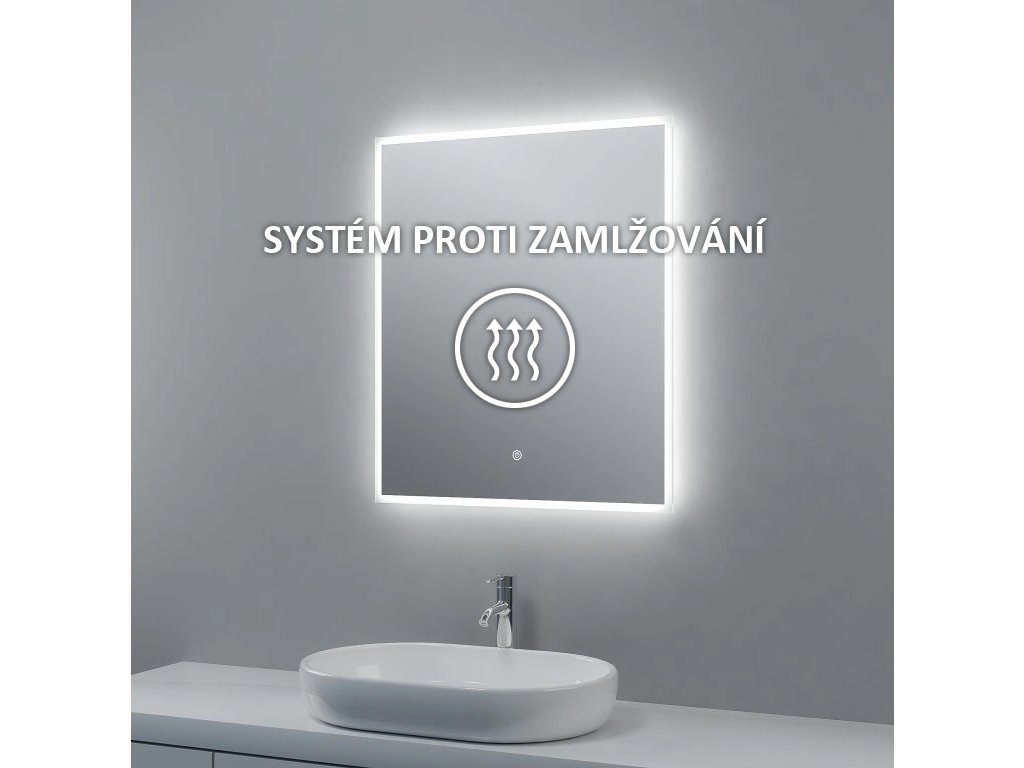 Zrcadlo 60 x 70 cm, s LED osvětlením a funkcí proti zamlžování, dotykový spínač DOPRAVA ZDARMA