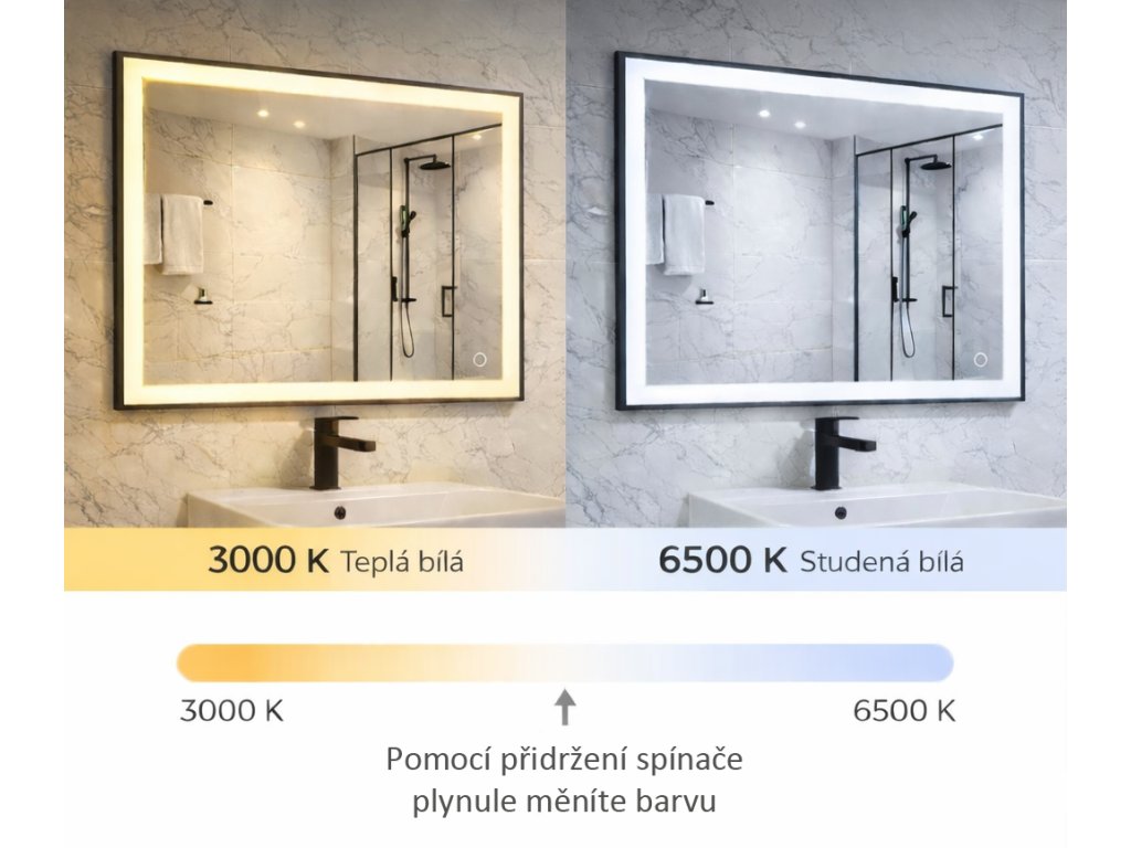 | Výbava: | LED osvětlení, nastavitelná teplota osvětlení, černý matný rám |