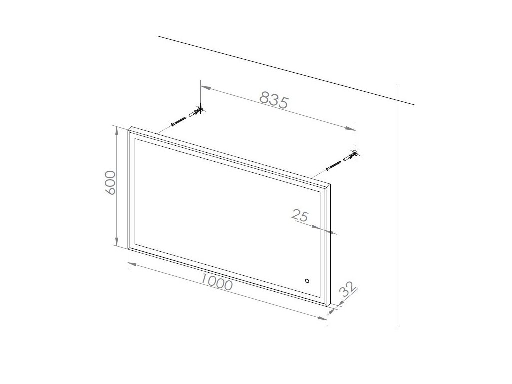 Zrcadlo má ze zadní strany hliníkový rám o hloubce 30 mm pro dostatečné chlazení modulu zrcadla a pohodlnou instalaci. Instalační materiál je součástí.